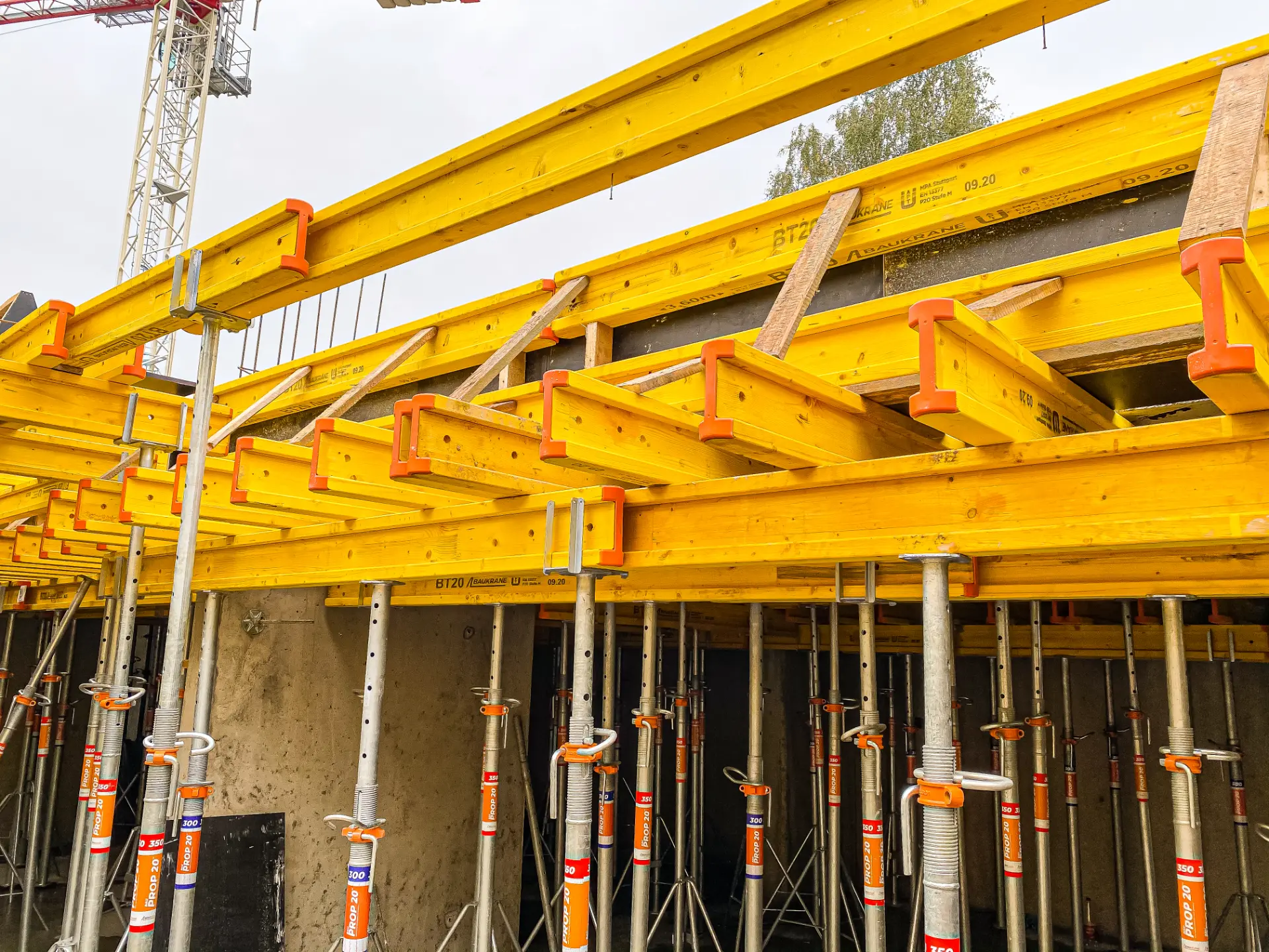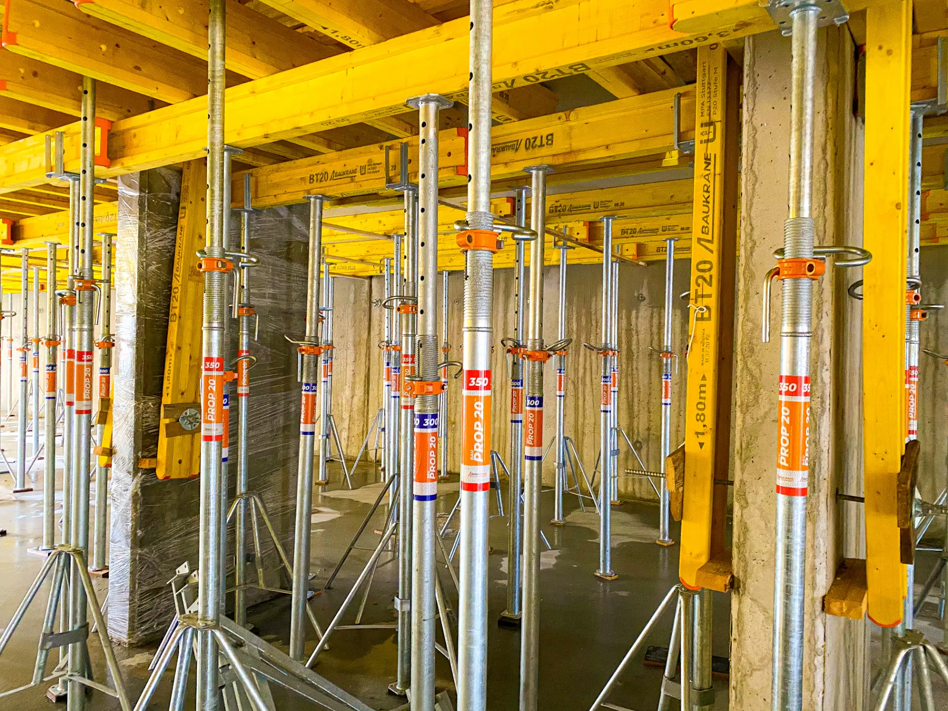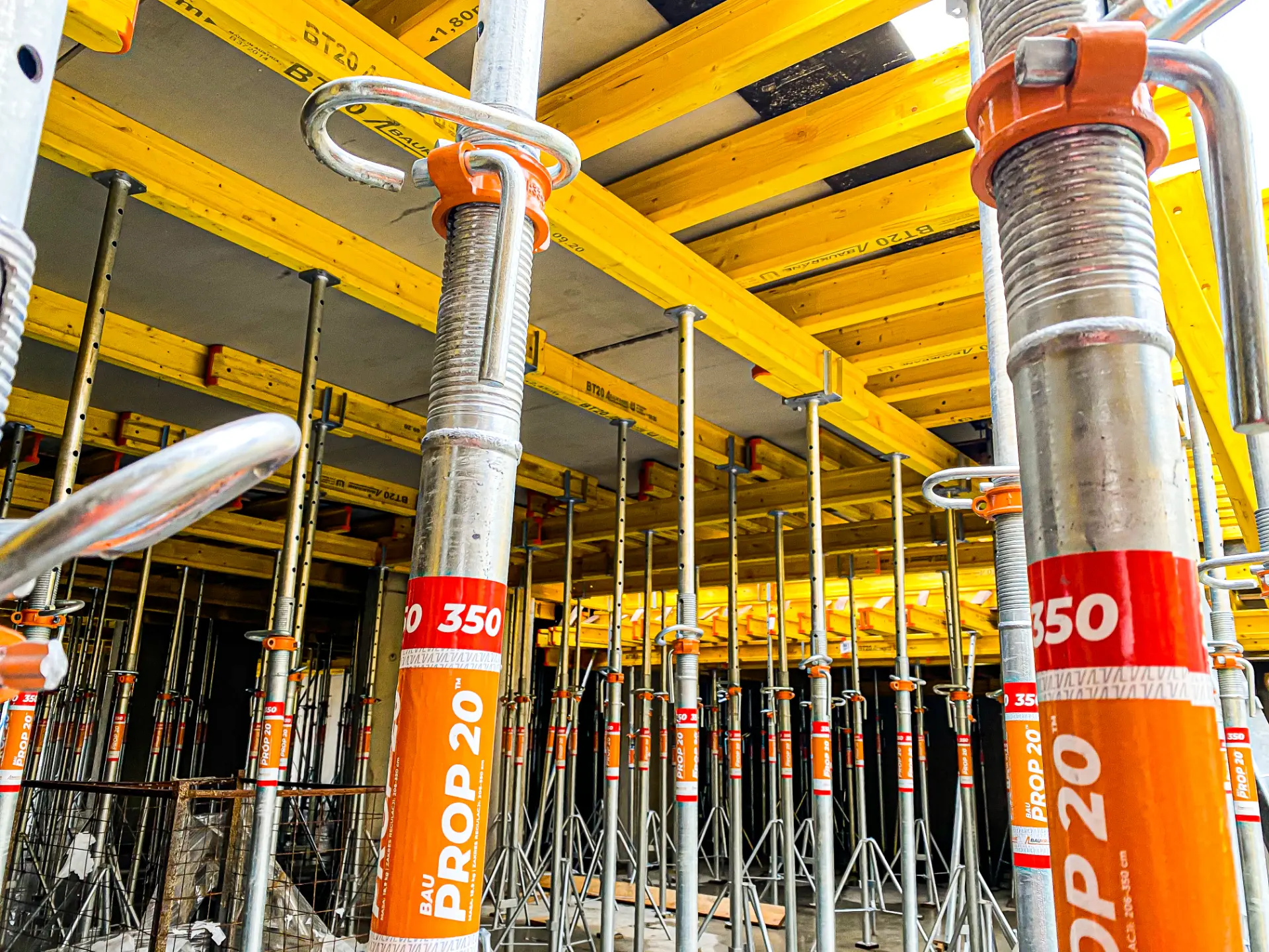 Kluczem do sprawnej realizacji było utrzymanie pełnej płynności prac stropowych i ciągłości robót na każdym etapie budowy. Dzięki szybkim transportom, terminowym dostawom oraz wykorzystaniu podpór Bauprop 20 o nośności do 20 kN, budowa mogła pracować bez zbędnych przestojów i z zachowaniem wysokiego tempa. Istotną rolę odegrała także świetna komunikacja na linii producent – budowa, która pozwalała elastycznie reagować na potrzeby inwestycji i skutecznie wspierała realizację zgodnie z harmonogramem.