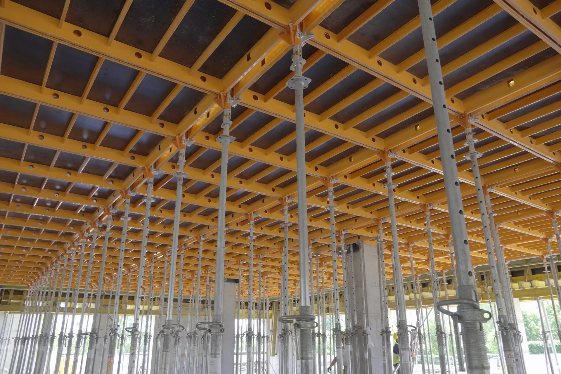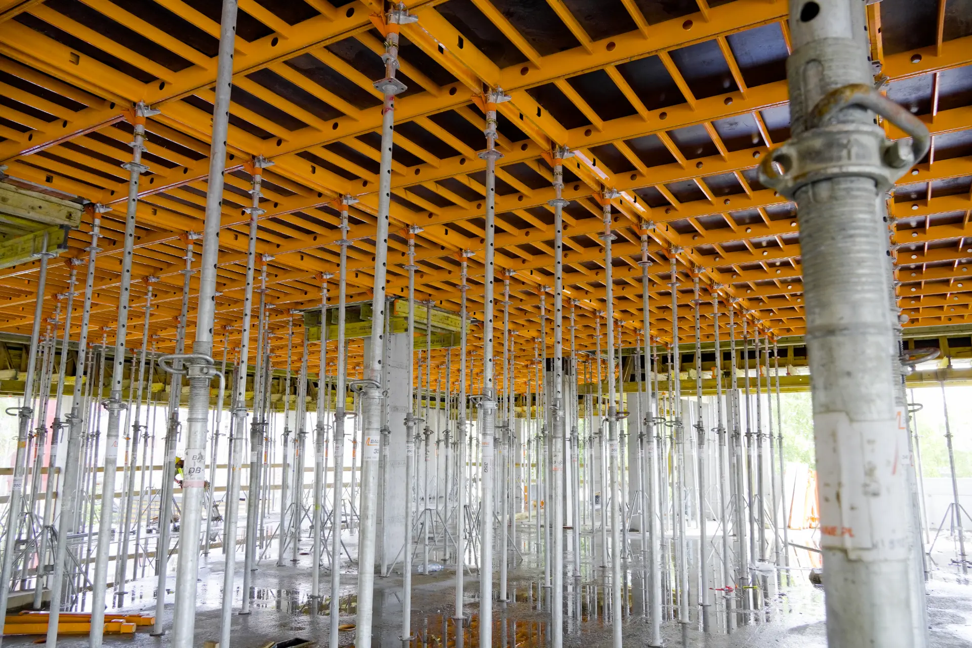 Największym wyzwaniem tej budowy było utrzymanie płynności robót stropowych w inwestycji prowadzonej etapami, przy kilku budynkach i rozbudowanym programie funkcjonalnym. W praktyce oznacza to konieczność sprawnej organizacji deskowania, szybkiego przechodzenia między kolejnymi frontami robót i utrzymania harmonogramu bez zbędnych przestojów.
